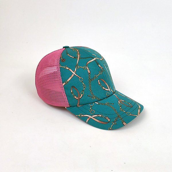 Літня бейсболка з 6-ти клинців. Виготовлена із двох тканин. Передня частина із костюмної бавовни з модним принтом, підсилена шаром бавовняної тканини . Такий спосіб обробки передніх клинців якраз для тих, хто не любить жорстких кепок. Додатковий шар бавовни надає кепці форму, але при цьому не заважає їй сісти по формі голови. Задні клинці виготовлені із поліамідної сітки, що в свою чергу забезпечує чудову вентиляцію і комфорт в літню спеку. Козирок гнутий, вистрочений, ширина козирка в найширшому місці 75 мм. Застібка на липучку. Регулювання розміру +- 1 розмір.