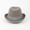 Наш «Хомбург» виготовляється із високоякісного фетру із 100%-го кролячого пуху. Обробка поверхні фетру – під замшу (suede). Вага капелюха 120 грамів. Висота тулії у «Хомбурга» складає 110 мм, ширина поля для 58-го розміру 55 мм. Край поля оброблений вузькою стрічкою. Лінію присаду окреслює стрічка шириною 40 мм, що закінчується бантом-метеликом із лівого боку. Капелюх має налобник із віскозної стрічки та підкладку із 100% віскозного шовку. Розмірний ряд від 56-го по 60-й розмір.